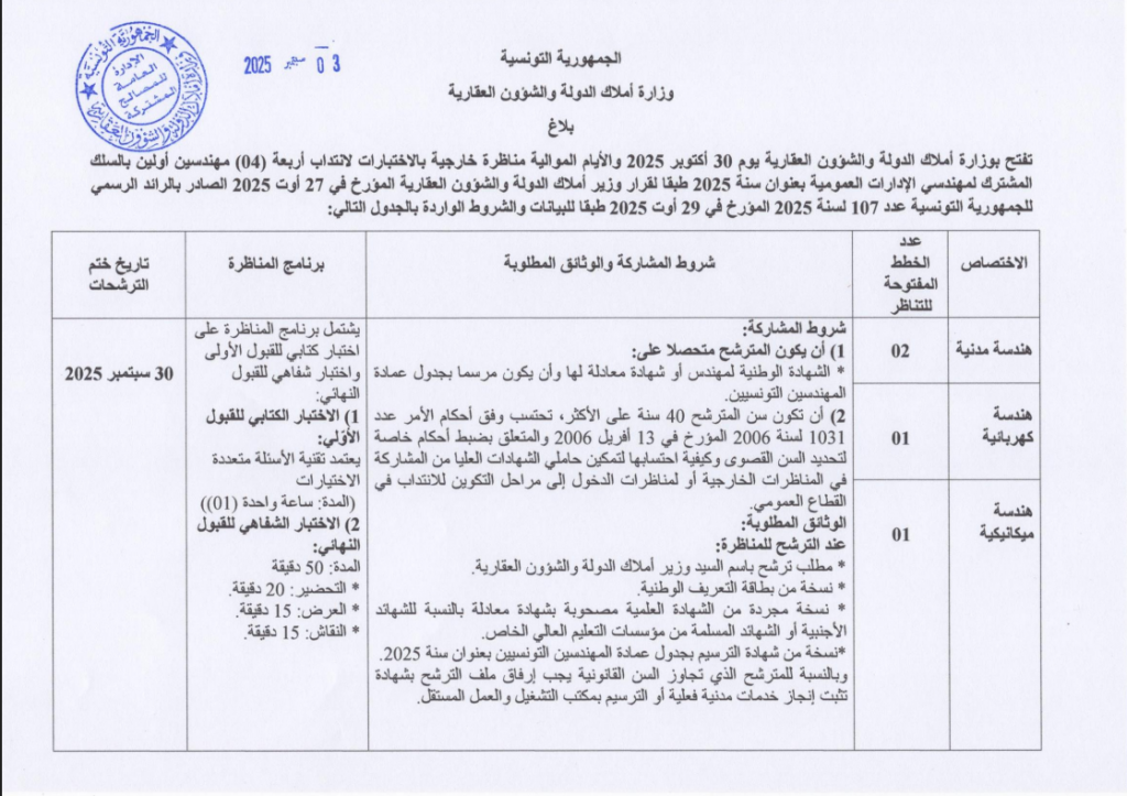 بلاغ Post published:10 سبتمبر 2025 Post category:الأخبار / مناظرات خارجية قد يعجبك ايضا وزير أملاك الدّولة والشؤون العقارية يشرف على جلسة عمل مع السيد المكلف العام بنزاعات الدّولة وعدد من المستشارين المقرّرين لنزاعات الدّولة. 17 أكتوبر 2024 وزيرة أملاك الدّولة تلتقي مديرة مكتب تونس للمركز الدّولي للعدالة الانتقالية. 23 فبراير 2021 الدّولة تسترجع 94هك من أراضيها بصفاقس وباجة 23 فبراير 2021